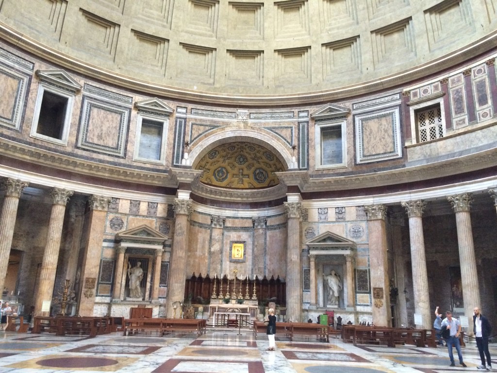 4. Trevi is one of the most famous fountains in the world brimming with baroque excess . The name is derived from the Latin word Trivium (intersection of three streets). The fountain is also famous for its coin throwing. It is estimated that US$1.5 million was thrown into the fountain in 2016. Pantheon is an underrated but inspiring monument that has survived since 126 AD. With its portico of Corinthian columns under a pediment, Pantheon resembles a Greek temple. In fact, it was originally a Roman temple that was later converted to a Church. Also, the word Pantheon is derived from the Greek word Pantheion translated as Temple of Gods. The interiors are grand but I was awestruck by the coffered dome with an oculus (classy word for skylight). It is easy to step back in time here as it one of the best preserved buildings from ancient Roman period.