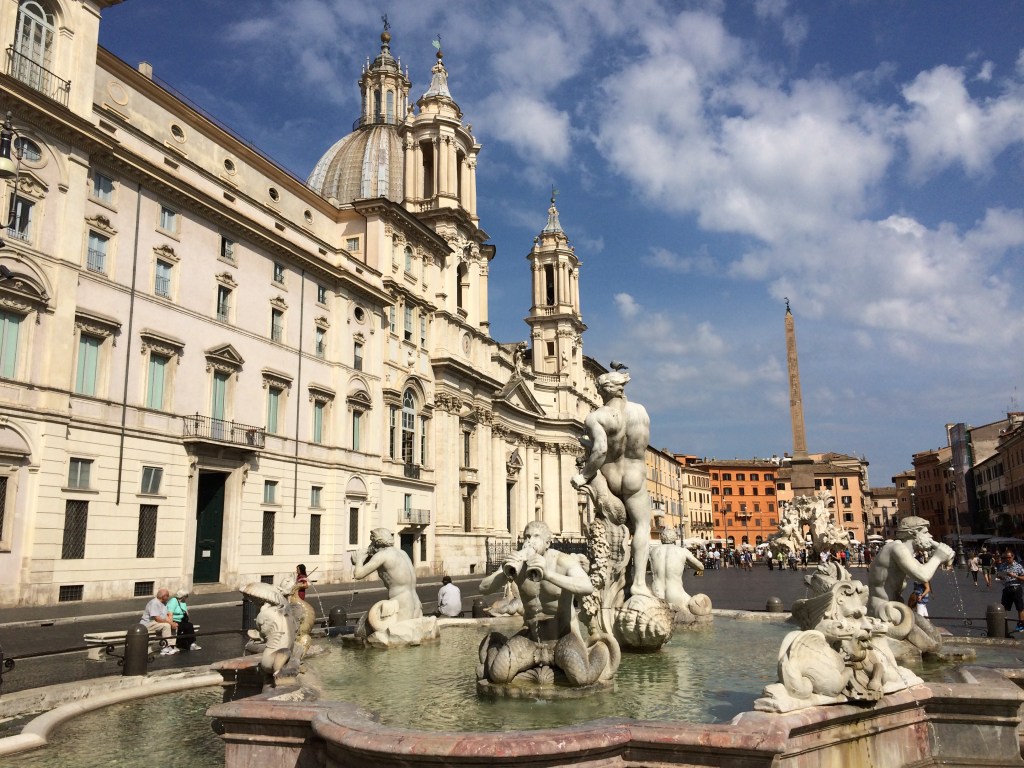 2. Piazza is the Italian equivalent of a market square. Similar to the Spanish word “Plaza, it is derived from the Greek word plateia (broad street). Piazzas define Rome’s urban landscape. Piazza di Spagna is known for its grand steps that were built to connect the Trinita De Monti church above the hill to the Spanish embassy to the Holy See in the square. Piazza Navona is decked with baroque grandeur best represented by Bernini’s Fountain of the Four Rivers water fountain. Piazza del Popolo (People’ Square) is by far the largest one in Rome and is similar in layout to the renowned Piazza San Pietro in the Vatican. The larger piazzas tend to have Obelisks which were mostly brought in from Egypt.