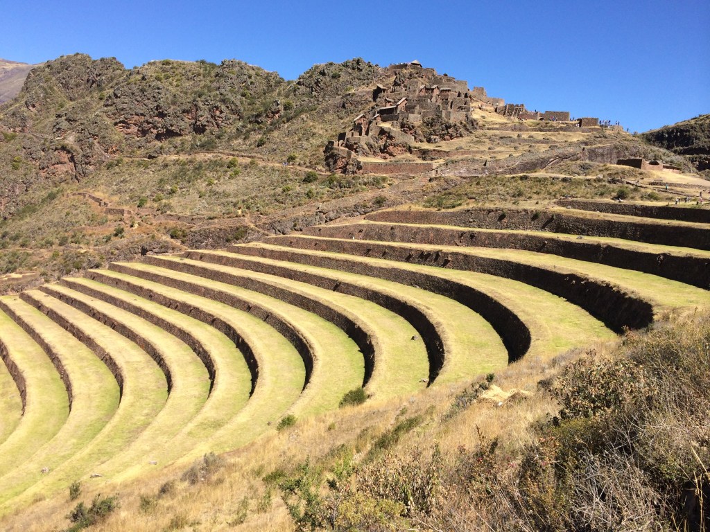 7. The Sacred Valley of the Incas is a valley formed by the Urubamba river. The early Incas had inhabited the Sacred Valley for its geographical advantages. The lower elevation and fertile valley allowed large scale cultivation of maize(corn) using terrace farming techniques. Corn was a prestige crop for them. It was used to make the fermented corn drink called Chicha Morada. The ruins of agricultural terraces at Moray, Ollyanthambo and Pisaq are all proof of this.